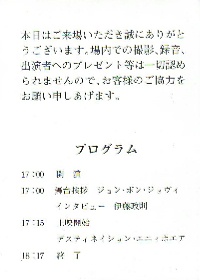 Program for the Premier show on July 12th 1997 at Ebisu Garden Hall (Tokyo,Japan)