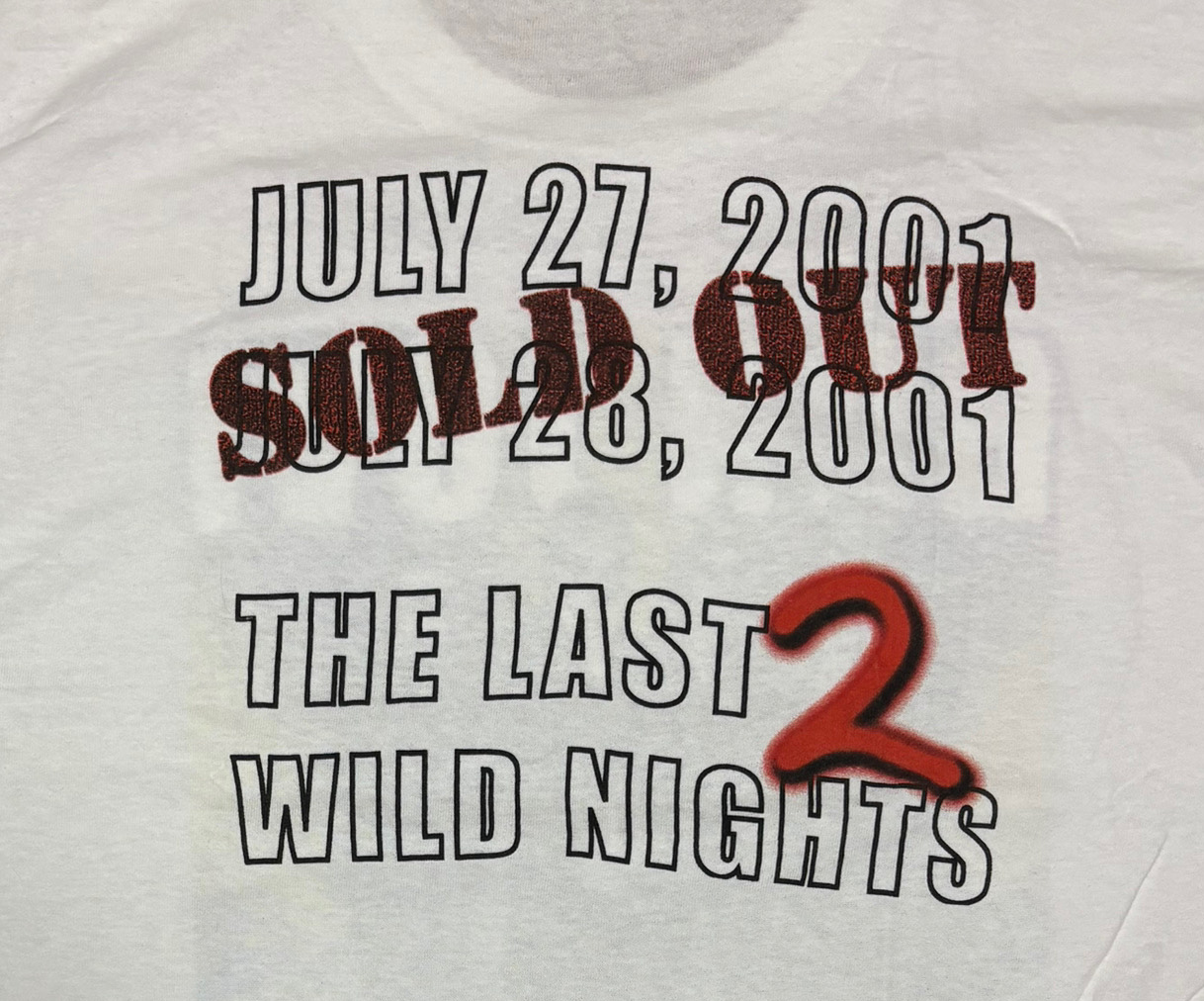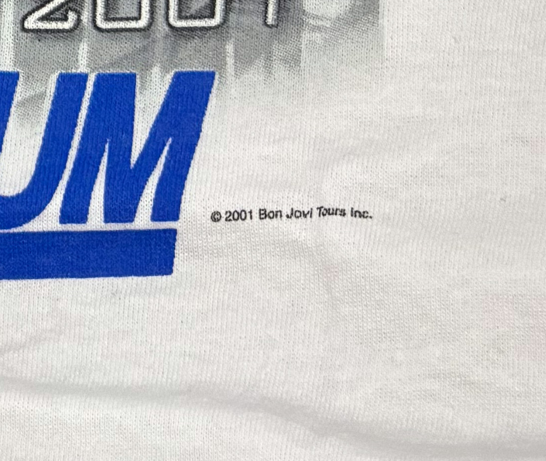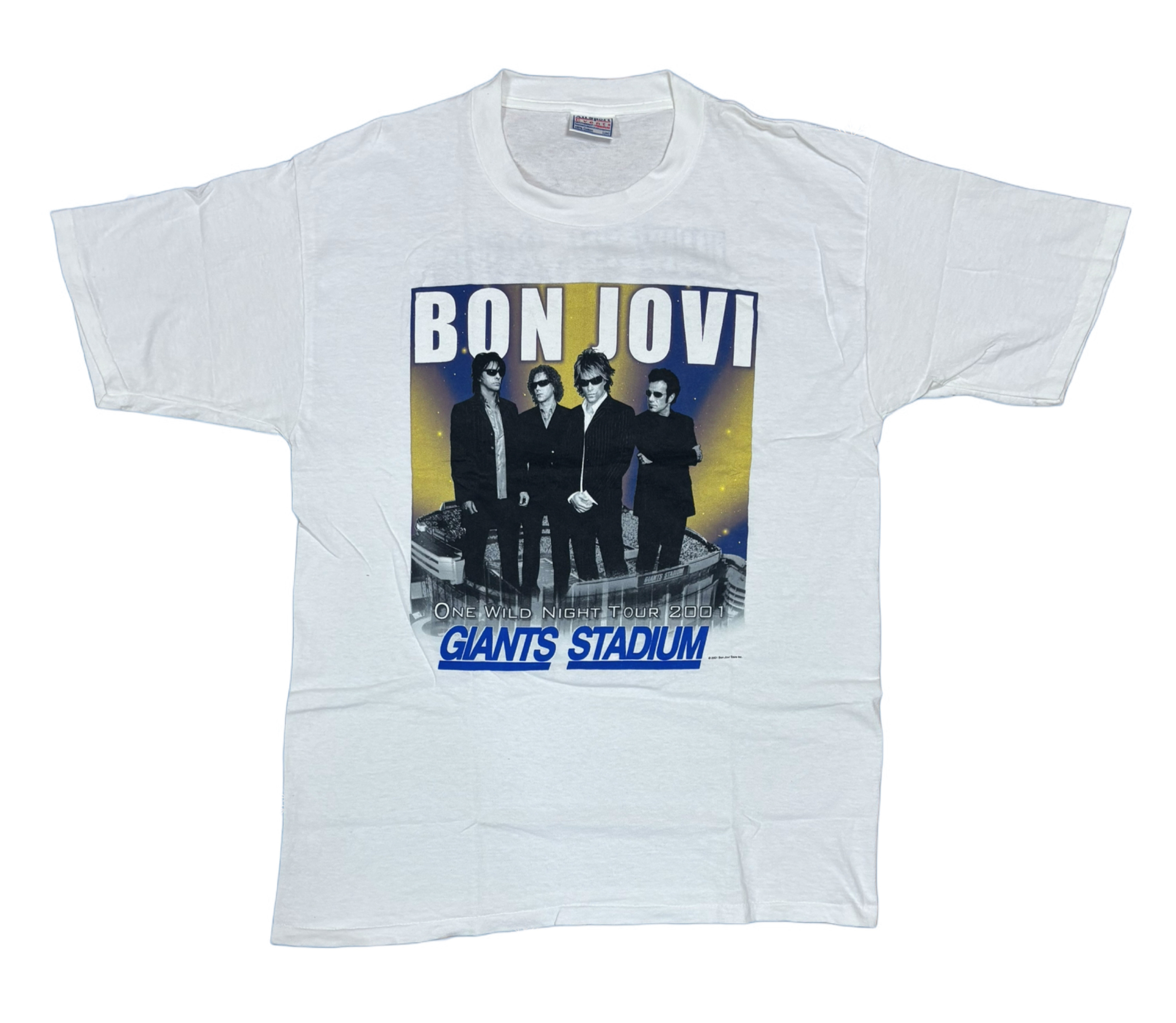notes : T-shirt commemorating BON JOVI’s final show of the 2001 “One Wild Night Tour" at their hometown GIANTS STADIUM on July 27th and 28th.