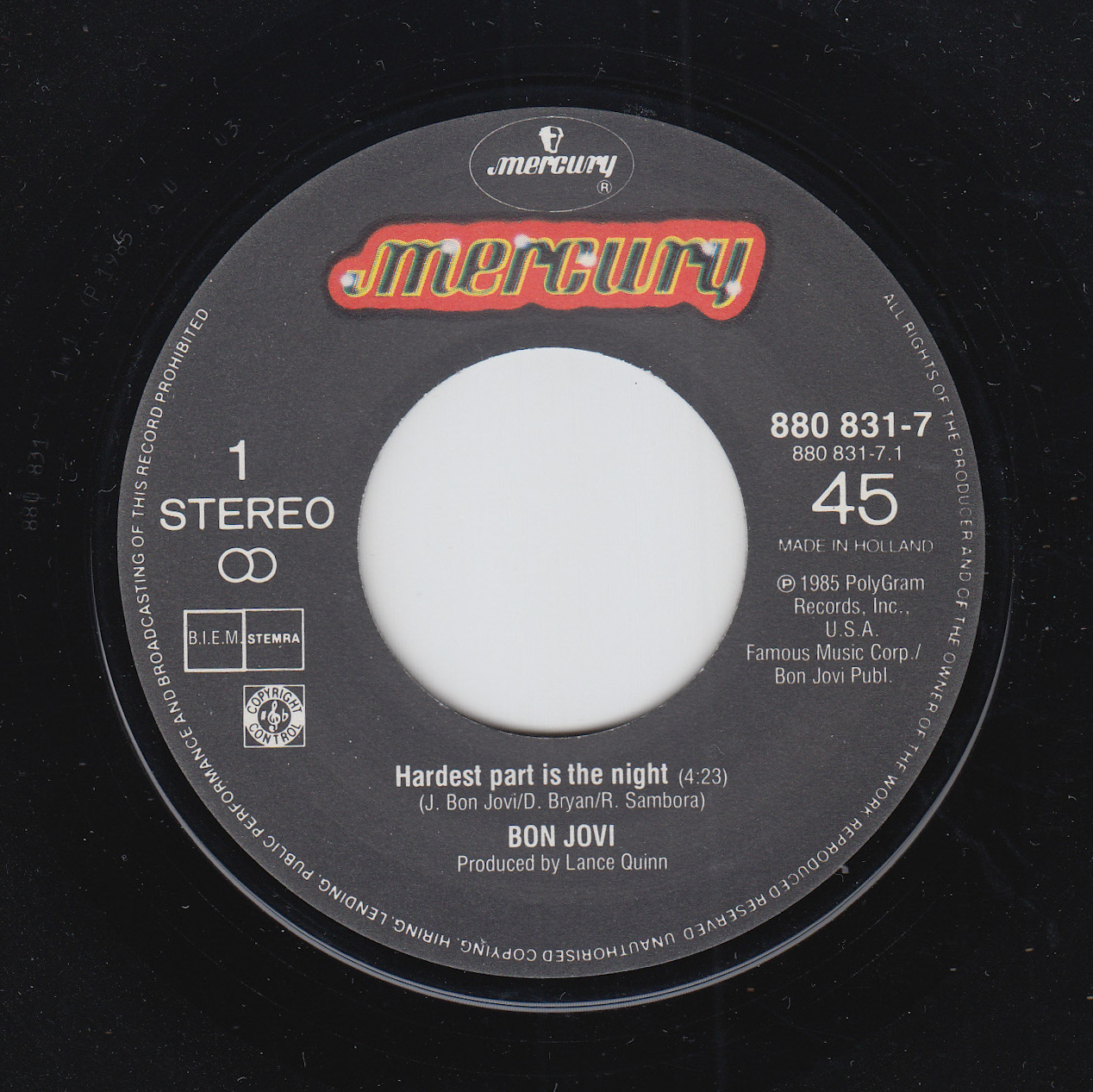 notes : A 7-inch single distributed for promotion in the NETHERLANDS. Side A features a BON JOVI song, and Side B features a TNT song.
