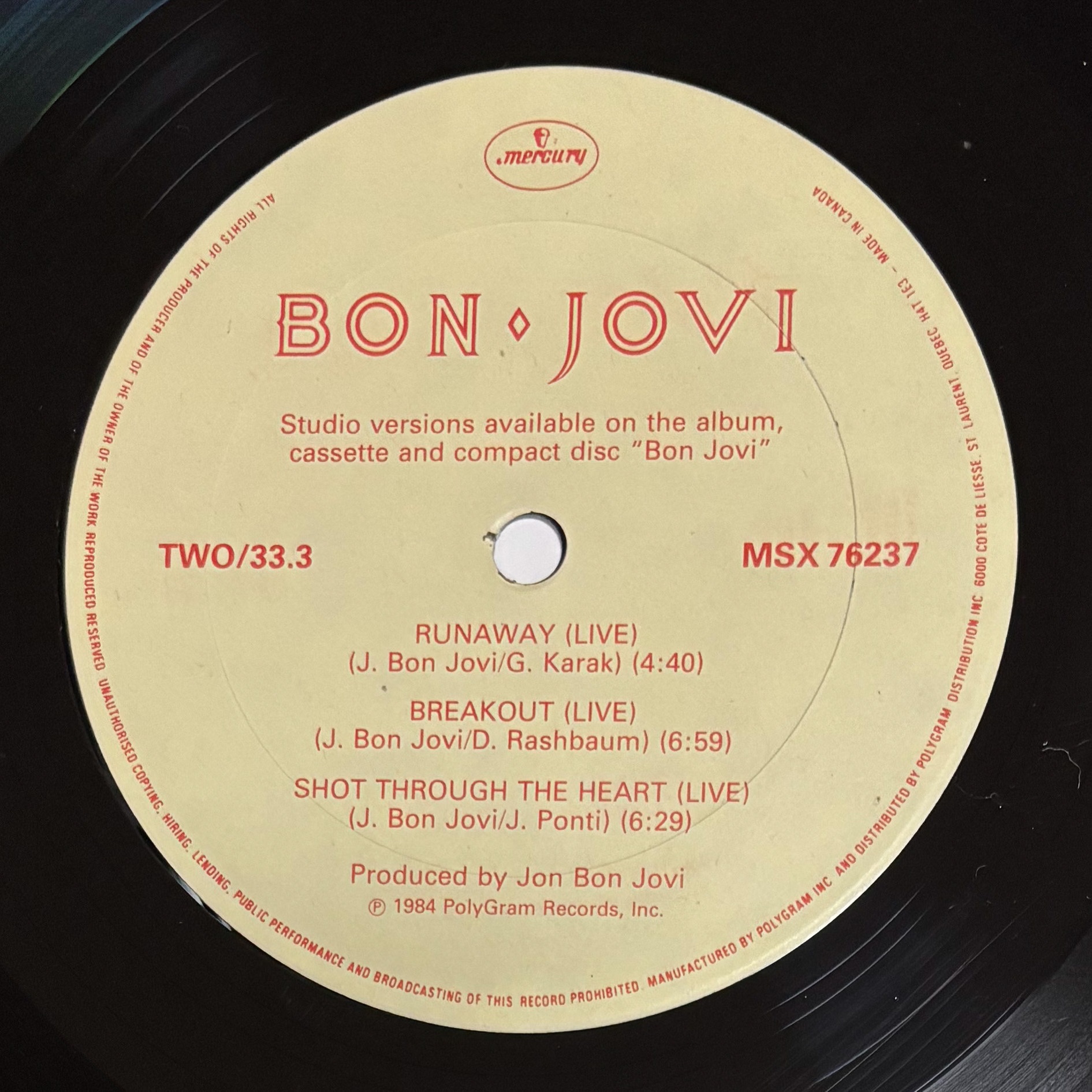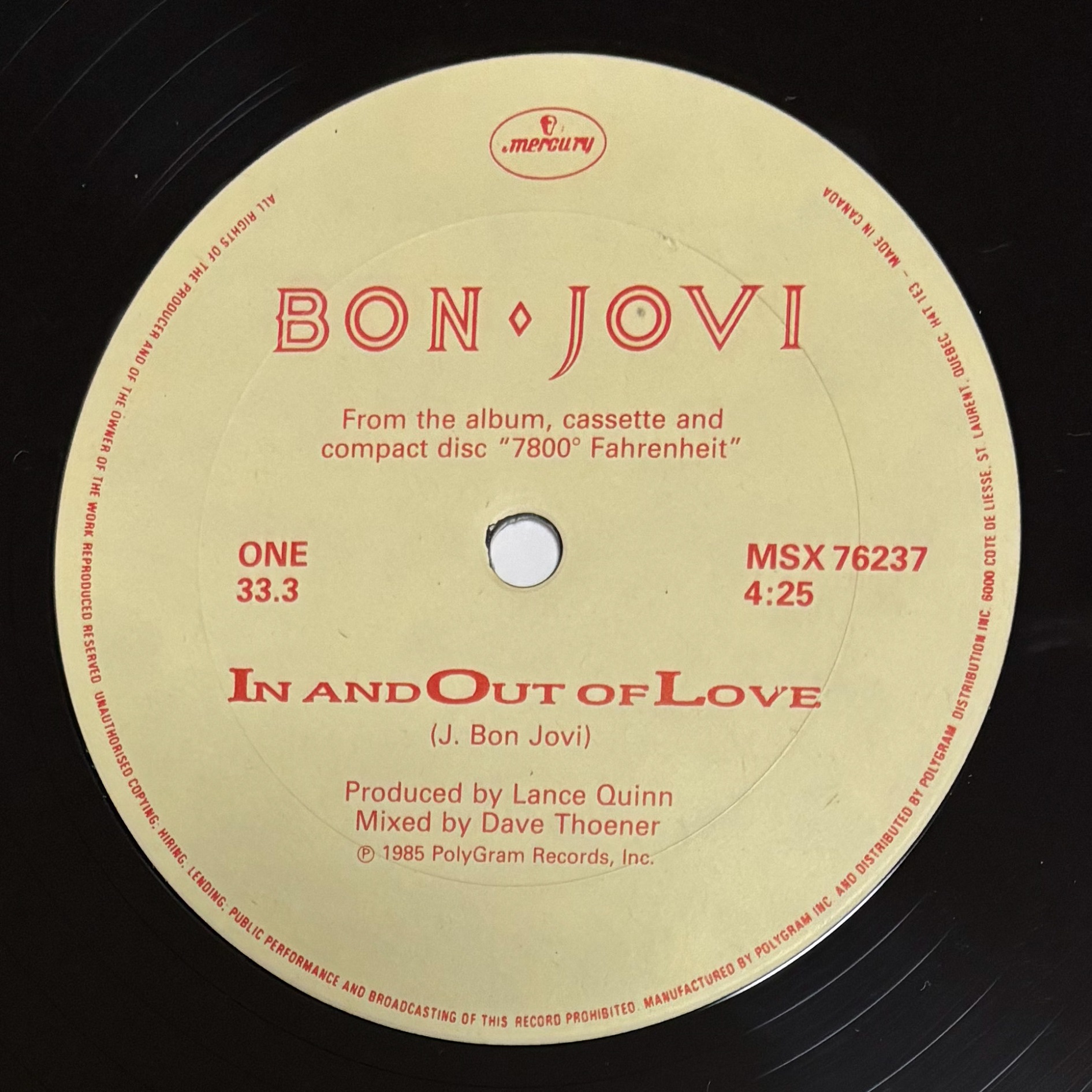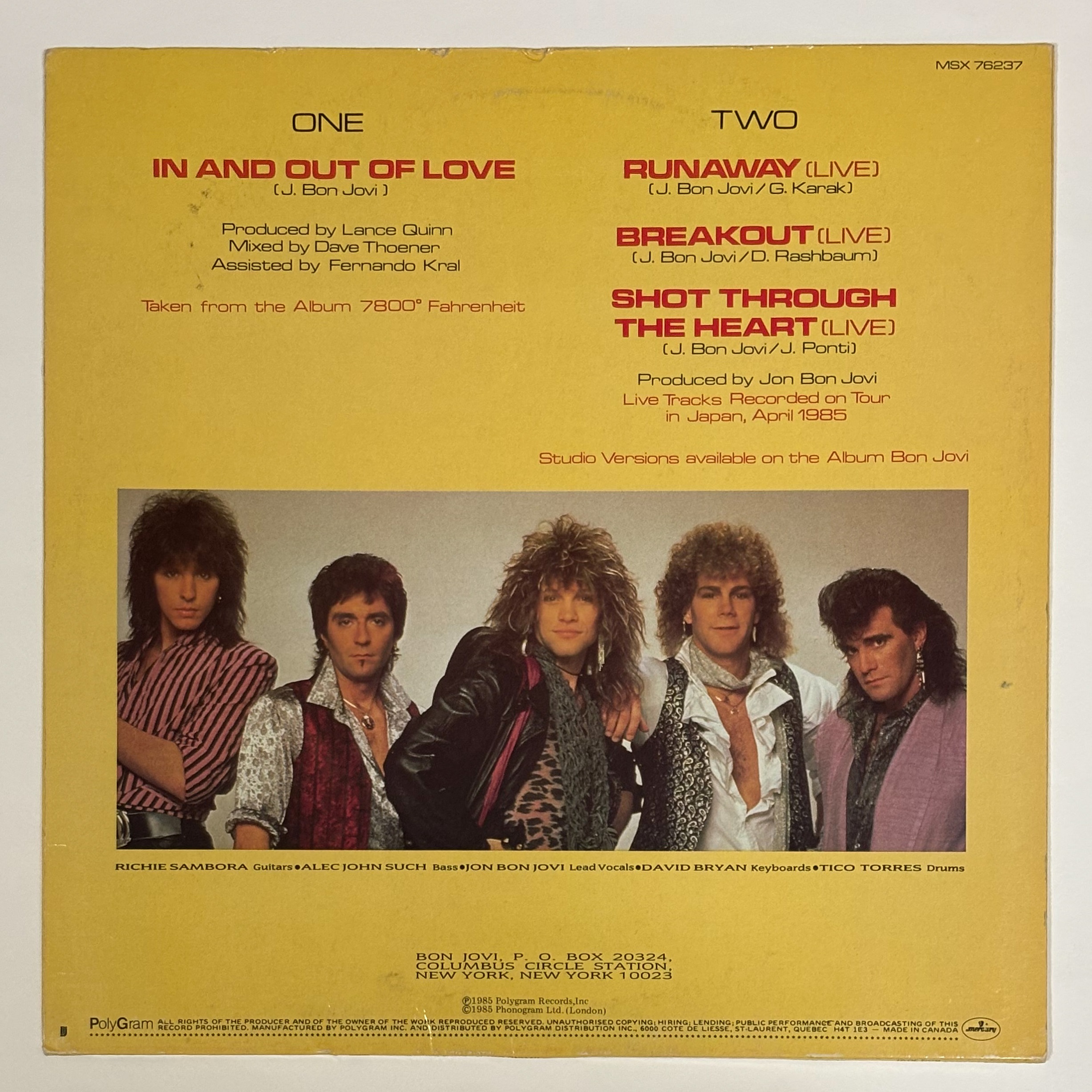 BON JOVI “In And Out Of Love” (12inch,CANADA,1985)