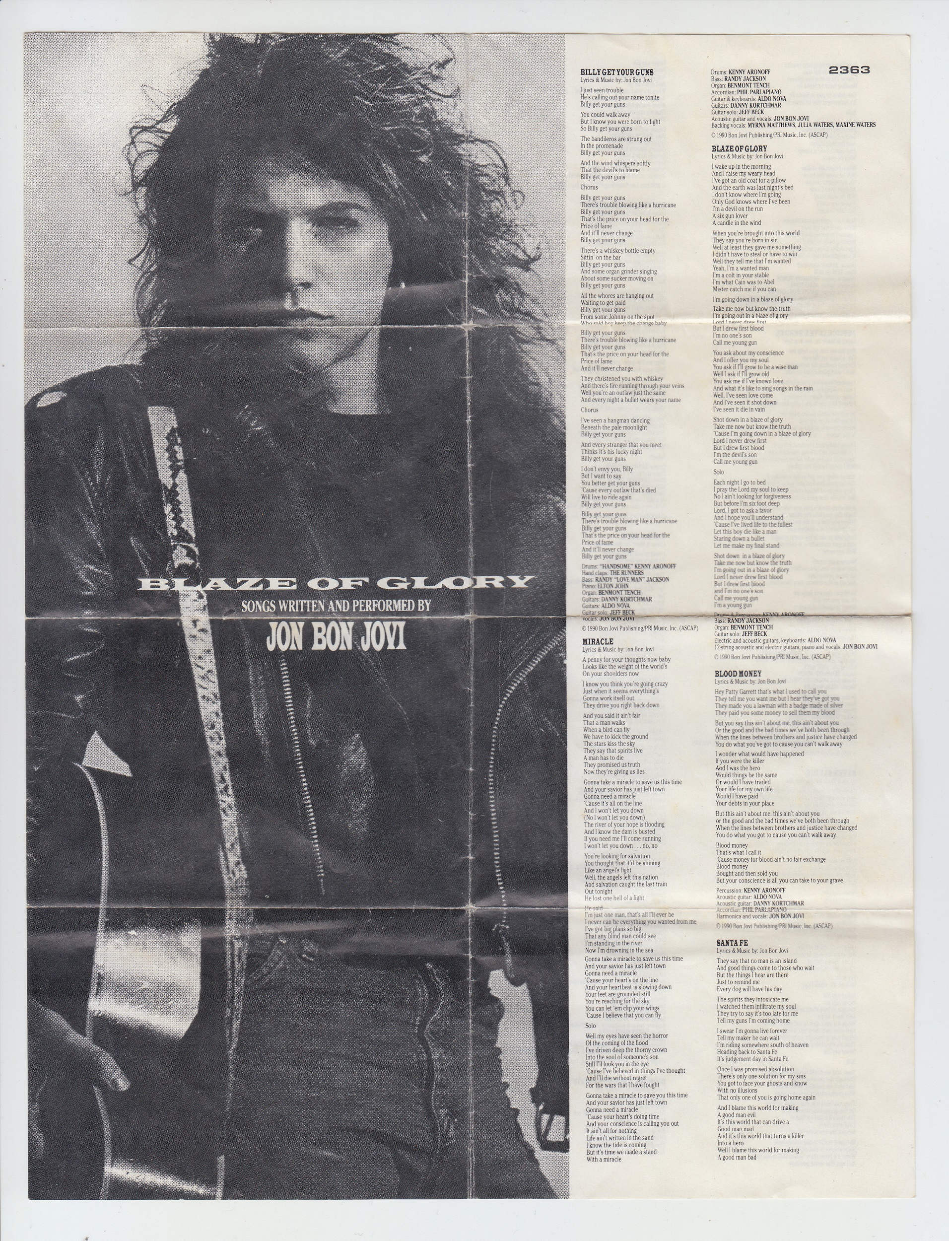 JON BON JOVI “BLAZE OF GLORY / YOUN GUNS II” (Cassette,TAIWAN,1990)