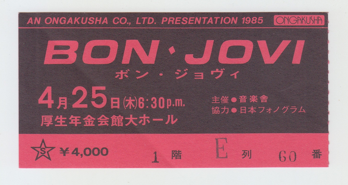 notes : Tickets for BON JOVI’s second and first solo concert in JAPAN, April 25th at the KOSEI NENKIN HALL in OSAKA.