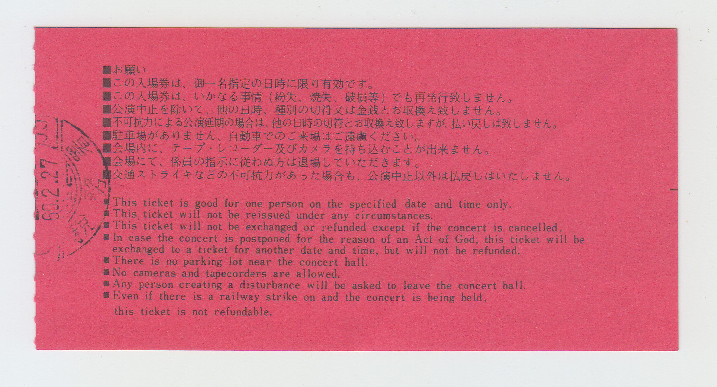 date : 1985.4.25 KOSEI NENKIN KAIKAN BIG HALL (厚生年金会館大ホール), OSAKA, JAPAN