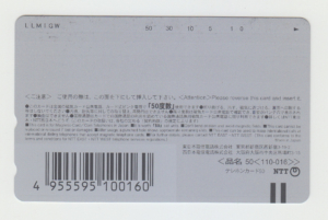 notes : This is an unofficial telephone card sold outside the venue of a 2001 JAPAN tour. It has 50 credits. The card number is 110-016, a white telephone card that could be freely printed.