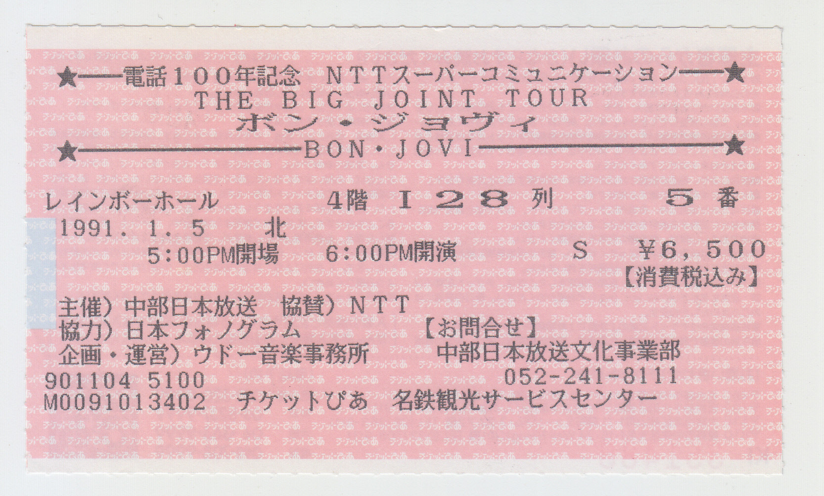tickets 1991bon jovi, japan, 1991, ticket, new jersey syndicate tour, kanagawa, nagoya, aichi, japan tour, 910105