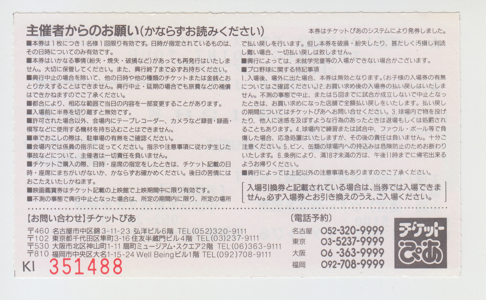 備考 : 1991年1月5日名古屋のレインボーホール公演のチケット