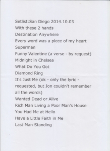 JON BON JOVI AND THE KINGS OF SUBURBIA “Live Setlist” (2014.10.3 SAN DIEGO)