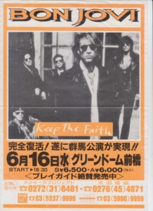 備考 : ボン・ジョヴィ、1993年来日公演、前橋公演フライヤー。ボン・ジョヴィの前橋公演はこの時が最初で最後