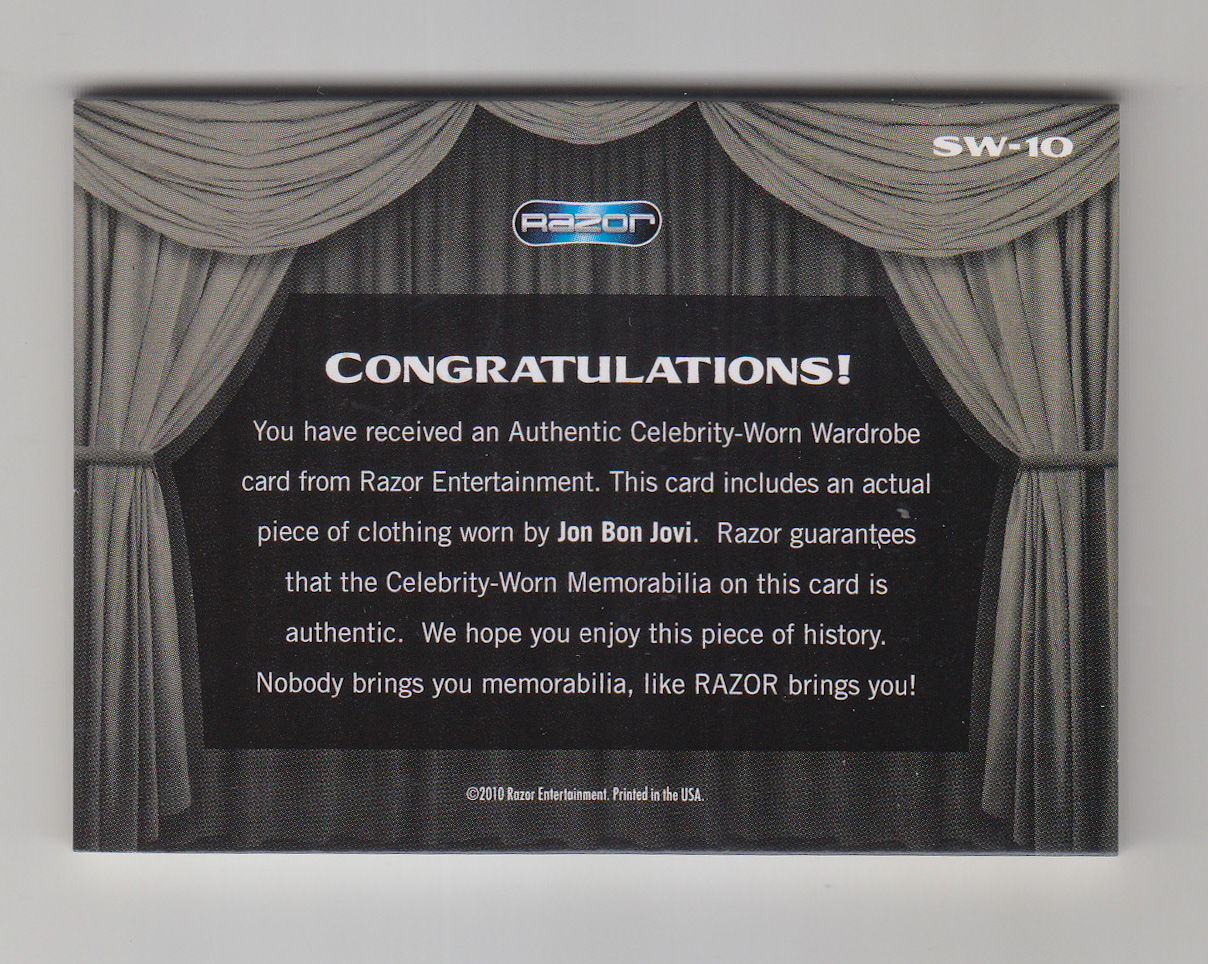 JON BON JOVI “AUTHENTIC CELEBRITYーWORN WARDROBE card” (2010,USA)