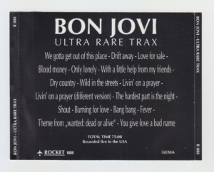 特定できていないのはLivin’ On A Prayerの2バージョン。9曲目はアコースティックから4分過ぎにエレクトリックになるライブバージョン、10曲目は全エレクトリックのライブバージョン