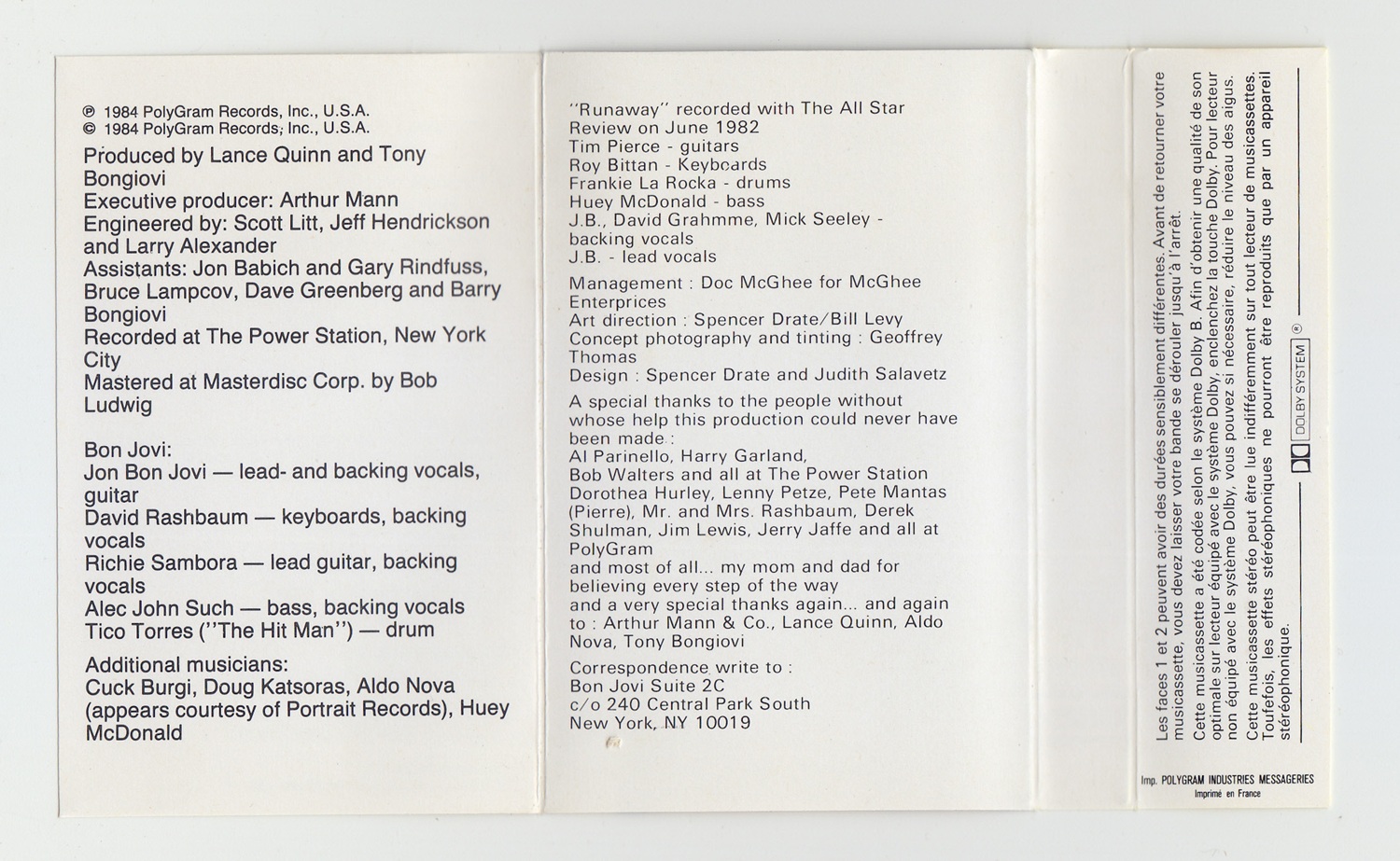 BON JOVI “BON JOVI” (Tape,FRANCE,1984)