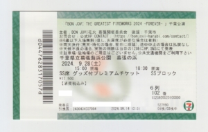 備考 : 2024年に日本の千葉県と宮崎県にて開催された花火大会。千葉公演のチケット。ボン・ジョヴィの楽曲に合わせ、花火が打ち上げられました