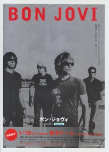 notes : BON JOVI’s 2003 tour in JAPAN, the Tokyo Dome performance announcement flyer. Following the sold-out performances on January 17th and 19th, this was produced for the January 16th performance, for which there were only a few seats remaining.