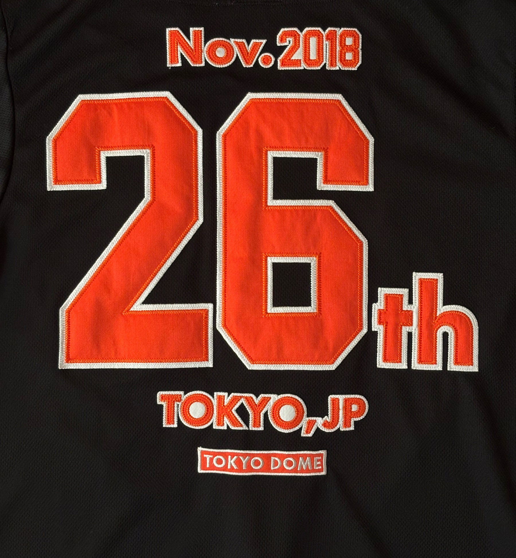 notes : These baseball uniforms were sold at BON JOVI’s November 26th performance during their 2018 “THIS HOUSE IS NOT FOR SALE TOUR" in JAPAN. The uniforms feature orange, the team color of the Yomiuri Giants, whose home stadium is the Tokyo Dome.