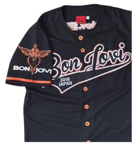 備考 : ボン・ジョヴィが2018年に行なった"THIS HOUSE IS NOT FOR SALE TOUR" 日本公演のうち11月26日公演で販売されたベースボールユニフォーム。会場の東京ドームを本拠地とする読売巨人軍のチームカラー、オレンジが使われている