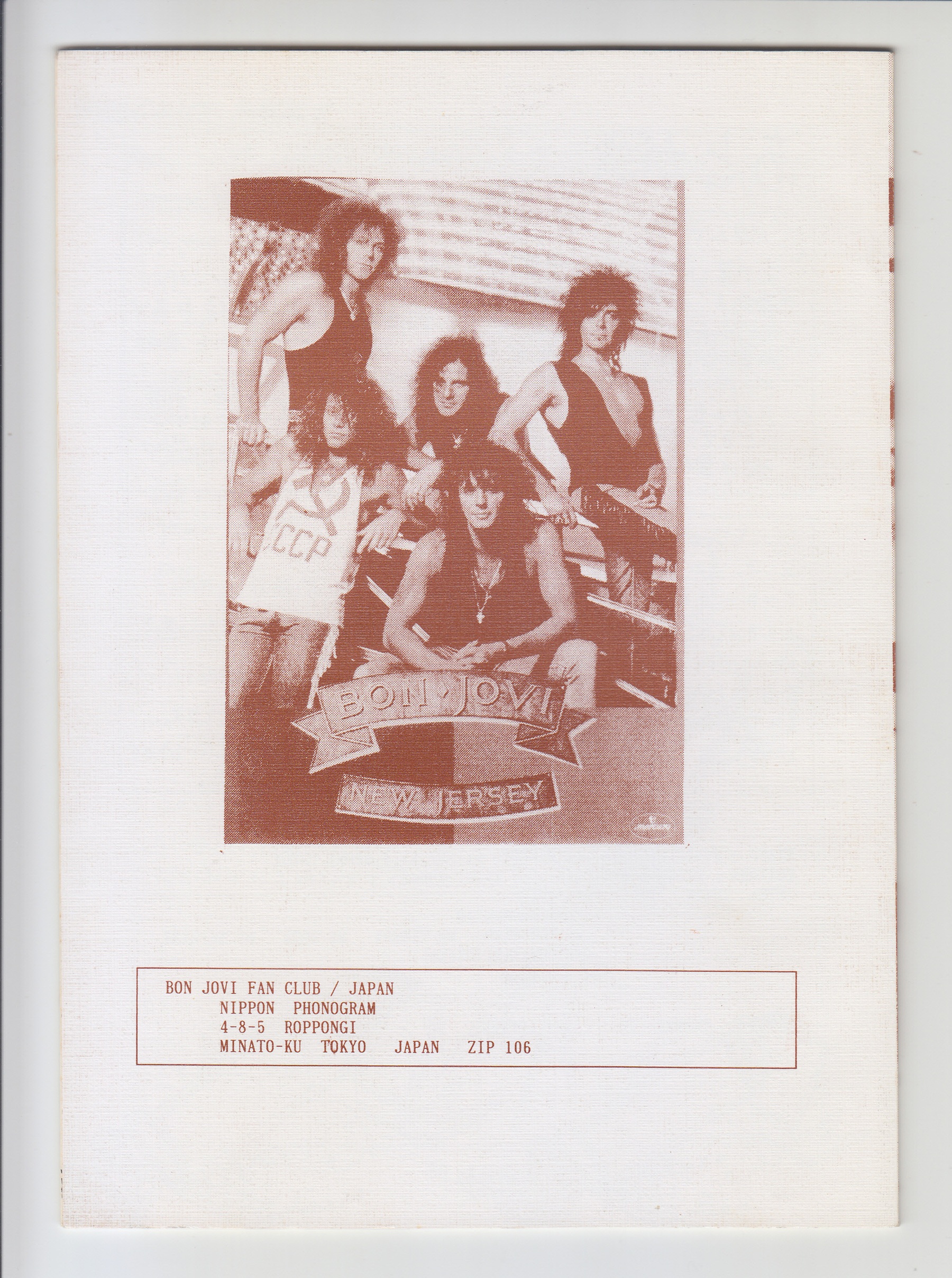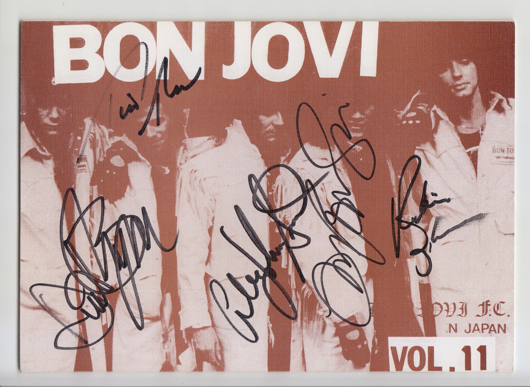 notes : BON JOVI’s Japanese fan club newsletter, issue 11 of 1990 (issued in December, though not stated). Includes fan club member surveys and more. Autographed by all five members on the cover (not all newsletters were autographed).