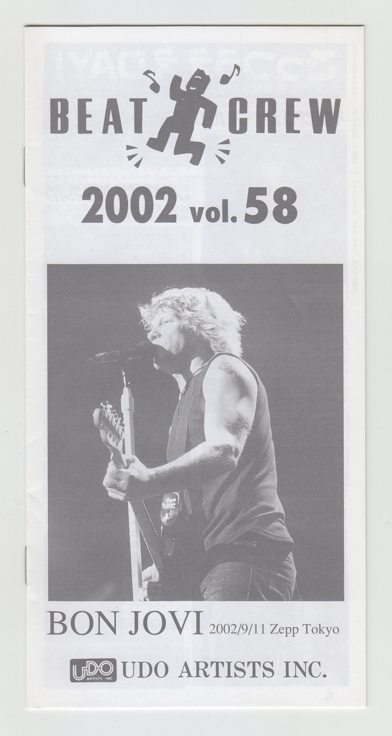 備考 : 日本のプロモーター、ウドー音楽事務所の大阪地区担当、ウドー大阪が会員向けに配布していた会報誌。2003年1月のボン・ジョヴィ日本ツアー(大阪公演・福岡公演)情報、1984年から2001年に開催されたボン・ジョヴィ日本ツアー大阪・兵庫公演のセットリストを掲載