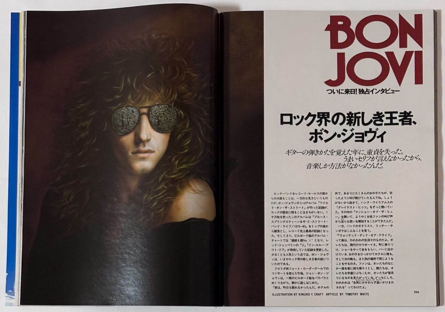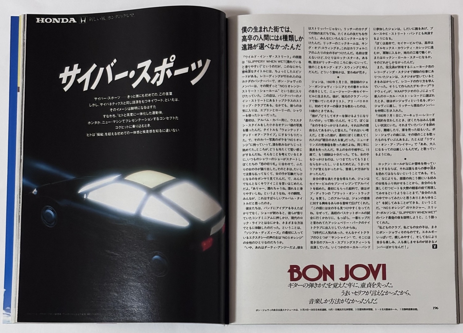 option : An interview with JON BON JOVI published to coincide with BON JOVI’s JAPAN tour. The interview reflects on the period from before BON JOVI was formed up to that time.