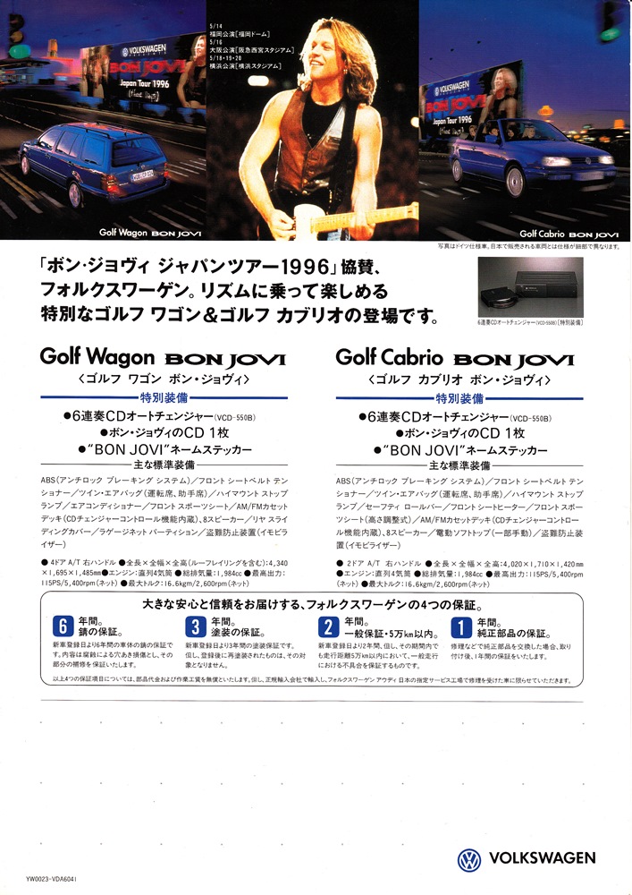 備考 : 1996年の日本ツアーを協賛したフォルクスワーゲンから発売されたBON JOVI Car。その発売を告知するフライヤー